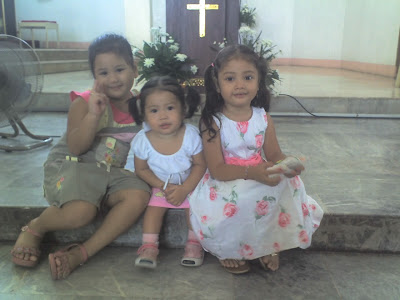 Yena was not feeling well last sunday, she has on and off fever since saturday. During the mass last sunday, i was whispering to her to smile and get well, thats all i asked of her and it will be her mother's day gift to me, surprisingly she was back to her normal active self after the mass. See how my daughter grants my wish. :) She was willingly posing for this pictures after the mass..